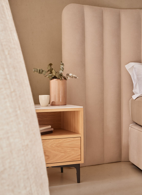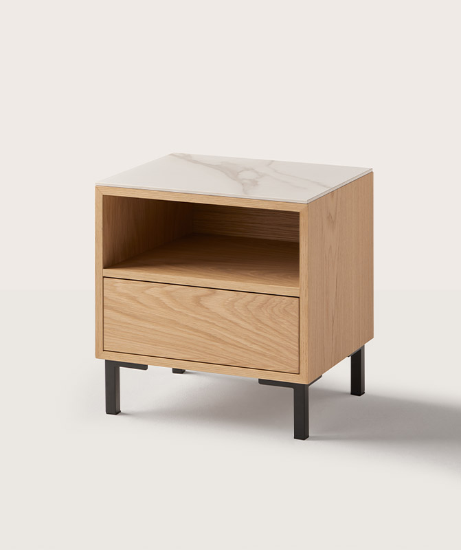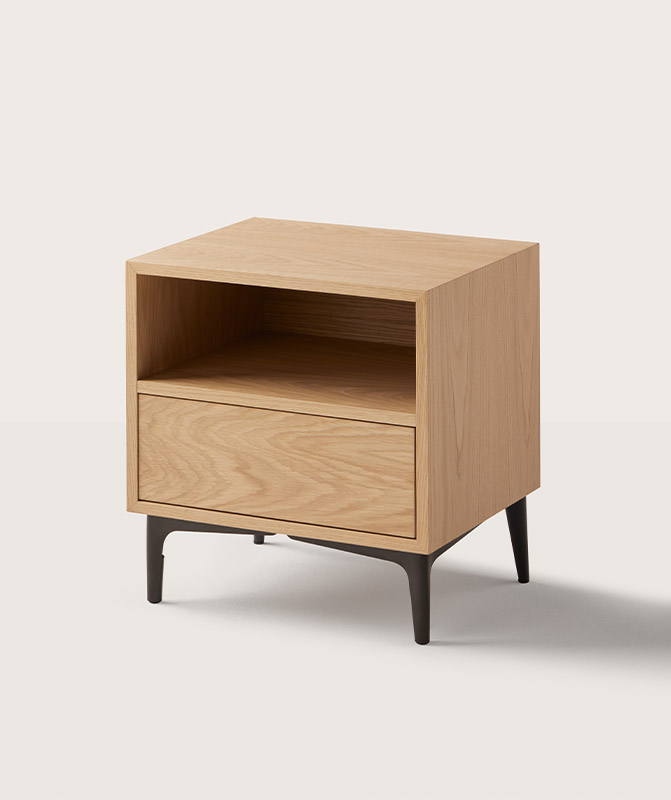 Faites entrer la nature dans votre maison pour qu’elle reste à vos côtés pendant que vous vous reposez. Nous avons sélectionné des tables basses en placage de chêne naturel et de noyer, qui intègrent des tiroirs robustes à des tiroirs dotés de mécanismes sophistiqués d’ouverture par poussée et une sélection minutieuse de pieds assortis au lit.