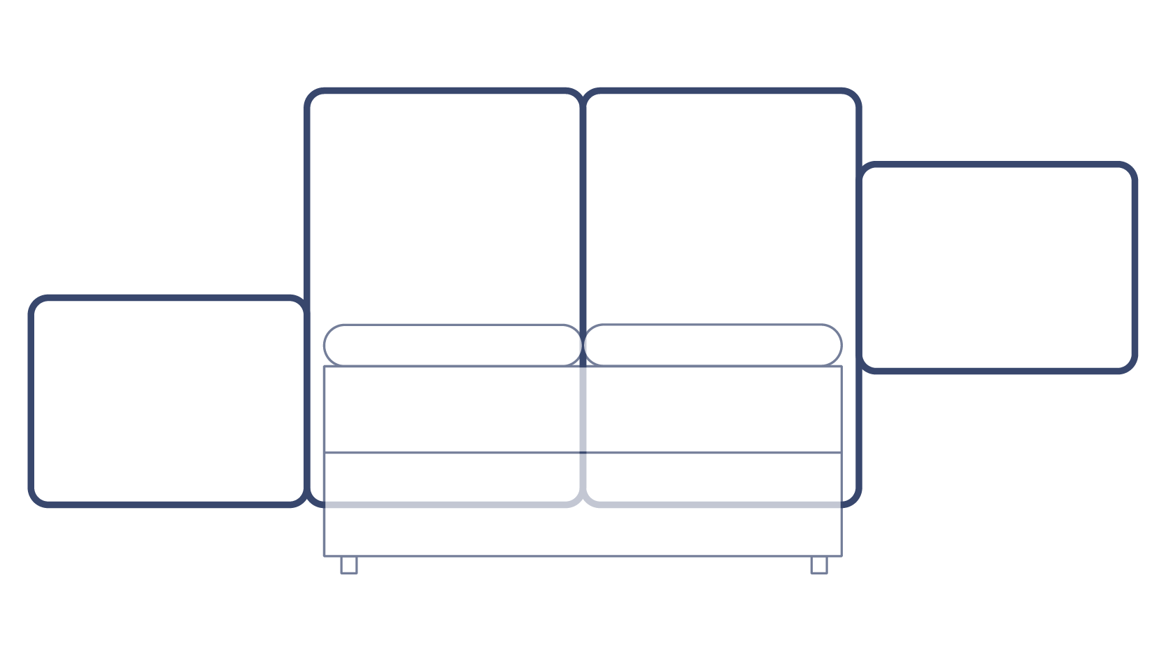 Con solo dos módulos de diferente tamaño puedes crear cientos de composiciones donde la única limitación es el espacio. Atrévete a combinar tejidos sin límite para crear una cama original.