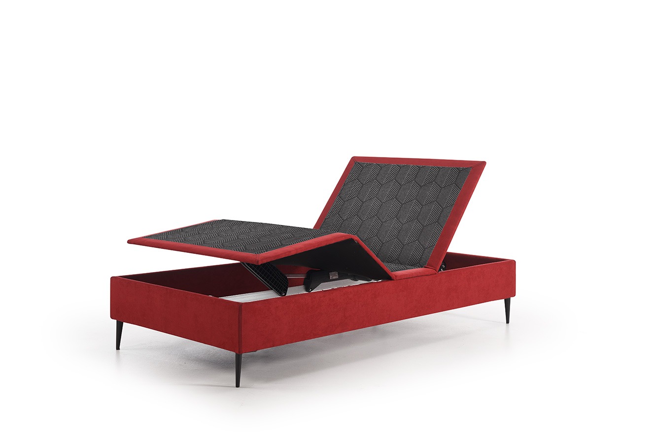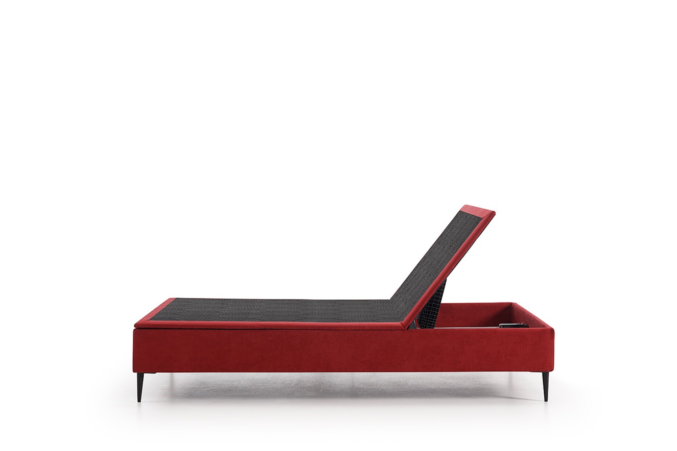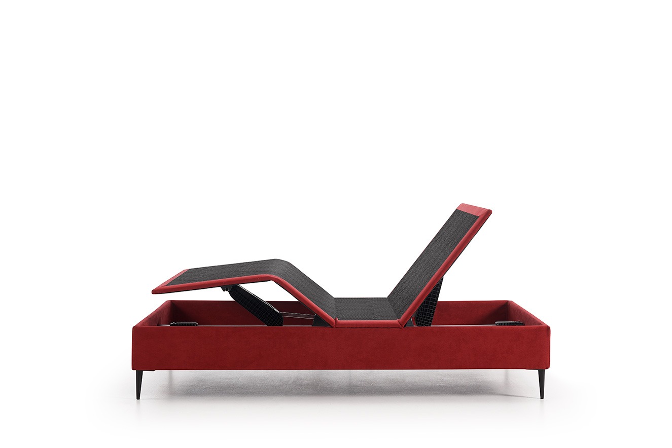Cuatro planos de articulación, espumas de alta resiliencia y un armazón de madera ligero, convierten a Platine en una cama moderna y minimalista, válida para cualquier ambiente, sin renunciar a la experiencia pura del confort.