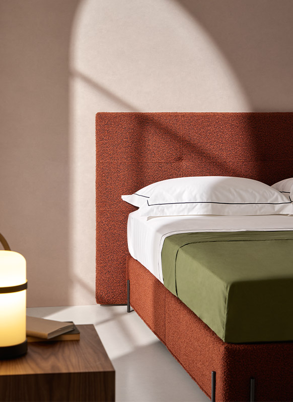 Formas homogéneas con laterales lisos y planos y un pequeño ribete como terminación inferior que, junto con el zócalo de madera o la cuidada selección de patas, crean una base sutil, calmada y atemporal que mantendrá un perfecto equilibrio con cualquier cabecero de la colección BEDS de Senttix